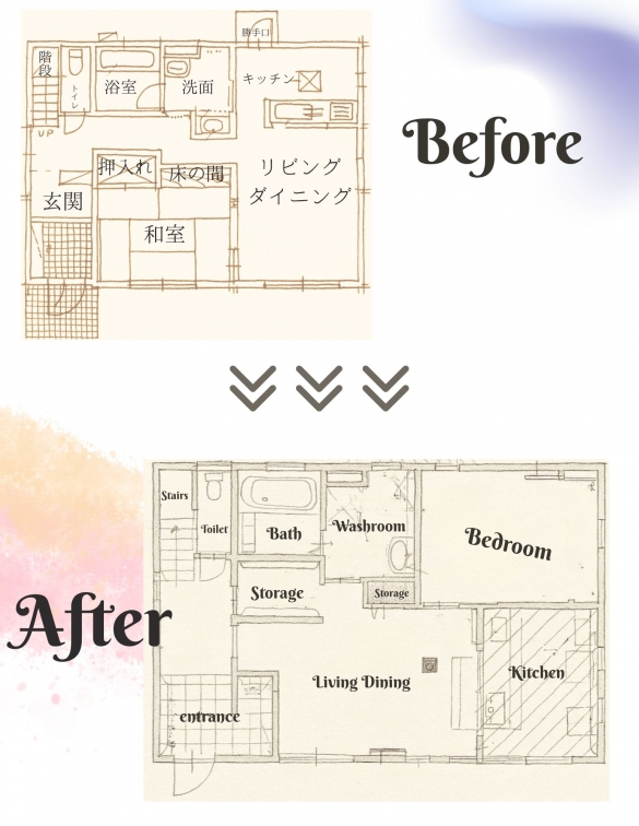 使わなくなった部屋や動線を見直し、日々の家事がしやすく、ゆったりと過ごせる空間へ整えていきました。